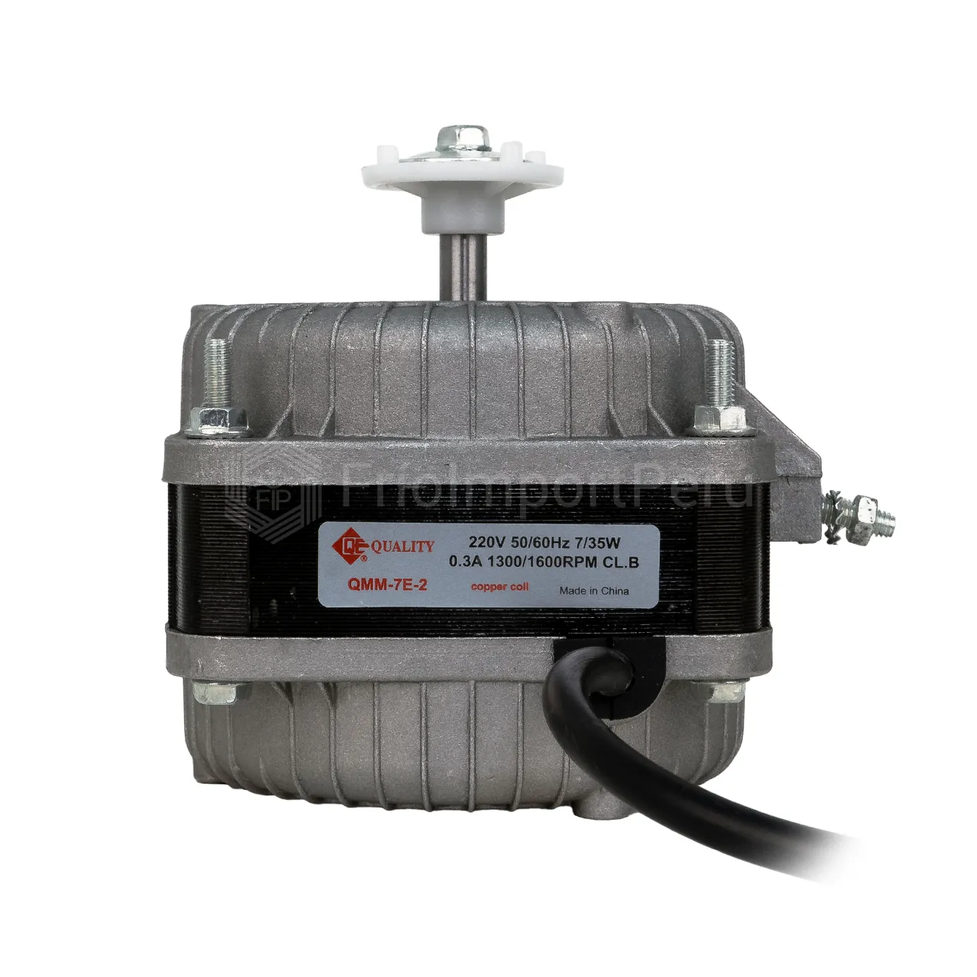 Motor de ventilador de 7 Watts marca Quality. Fuente de alimentación 220v 50/60Hz 0.5A 1300/1600RPM de velocidad. Incluye base y Aspa de Aluminio. Para uso en calefacción, ventilación, aire acondicionado y equipos de refrigeración y exhibidoras. Productos de alta calidad.